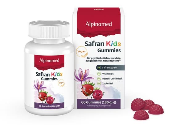 Alpinamed Safran Kids Gummies enthalten einen hochwertigen, konzentrierten Safran-Spezialextrakt aus 8 handverlesenen Stigmen (roten Fäden) des iranischen Safrans sowie veganes Vitamin B6, welches zu einer normalen Funktion von Psyche und Nervensystem beiträgt. Die Alpinamed Safran Kids Gummies in Form einer Beere überzeugen mit natürlichem Beeren-Geschmack. Rohstoffauswahl und Herstellung der Alpinamed Safran Kids Gummies unterliegen einem anspruchsvollen Prüfungs- und Qualitätssicherungsverfahren.