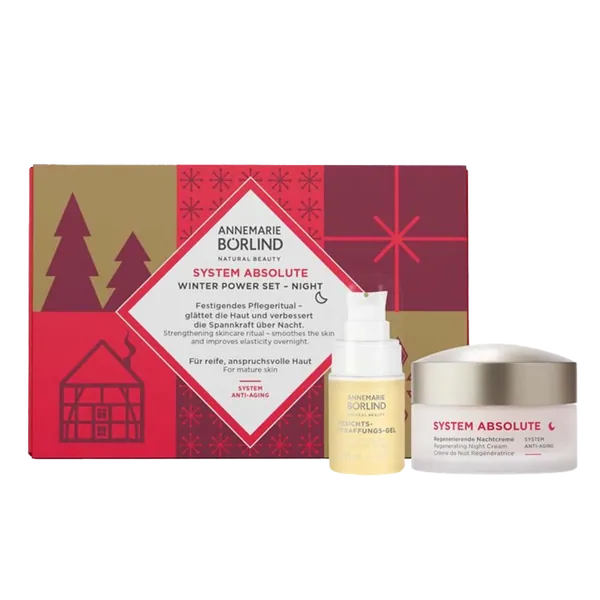 Schenke oder erlebe wohltuende Pflegerituale als Auszeit im Alltag. Unsere SYSTEM ABSOLUTE Serie mit Grünalgenextrakt und 3D-Wirkstoffmatrix aus dem Tarabaum aktiviert gezielt die Kollagen- und Elastinproduktion, fördert die Regeneration und spendet intensive Feuchtigkeit – optimal für die kalte Jahreszeit. Das Winter Power Night Set ist dein regenerierendes Anti-Aging Pflegeritual für die Nacht: Es glättet sichtbar, mildert Falten und schenkt ein erholtes, frisches Hautbild am Morgen.