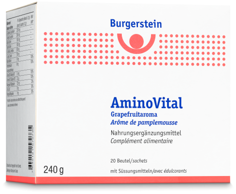 Burgerstein AminoVital enthält eine einzigartige Aminosäurenmischung ergänzt mit Taurin, Spurenelementen und Vitaminen.