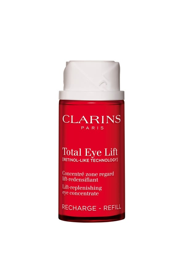 *****Das Refill kann nicht alleine verwendet werden". Innovation [RETINOL-LIKE TECHNOLOGY] - Der patentierte biologische Haronga-Extrakt ist ein exklusiver Aktivstoff von Clarins und wurde 2022 und 2023 in zwei wissenschaftlichen Publikationen veröffentlicht. Das Clarins Plus Ein neuer nachfüllbarer Flaskon aus Aluminium.Ab der 1. Nachfüllung trägst du dazu bei, die Umweltbelastung um 73 %* zu verringern, verglichen mit dem Kauf eines gefüllten nachfüllbaren Flakons.*Bei einmaligem Nachfüllen des Flakons : Vergleich zwischen 2 kompletten Flakons Total Eye Lift versus 1 kompletten Flakon + 1 Refill. Basierend auf einer speziellen Bewertung, die anhand einer Lebenszyklusanalyse berechnet wurde.