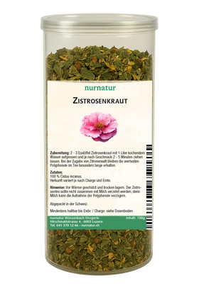 Wasser, Cystus® Tee-Extrakt, Mandelöl, Weizenkeimprotein, Glycerin-Fettsäure, Weizenkeimöl, Glycerin, pflanzliche Glycerylstearate, Bienenwachs, Xanthan- Gum, Phenetylalkohol, Rosenöl 100% echt