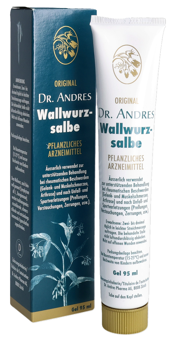 Das für die Original DR. ANDRES Wallwurzsalbe® verwendete Extrakt wird ausschliesslich aus frischen Wurzeln hergestellt, welche unmittelbar nach der Ernte nach einem speziell entwickelten Verfahren extrahiert werden. Der Anteil an Wurzeln in diesem Extrakt beträgt 30%.