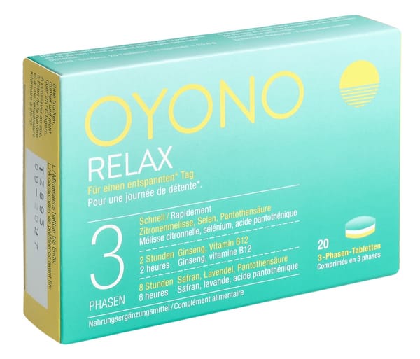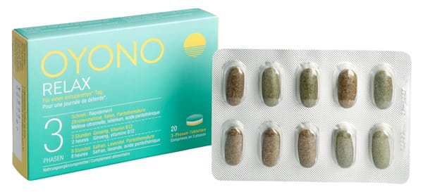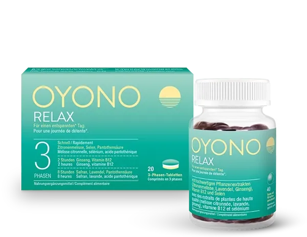 Die OYONO RELAX Tablette wird einmal täglich morgens mit etwas Flüssigkeit unzerkaut eingenommen. Ein bis drei OYONO RELAX Gums können als Kombination dazu oder allein durch den Tag verteilt eingenommen werden. Nahrungsergänzungsmittel sind kein Ersatz für eine ausgewogene Ernährung.