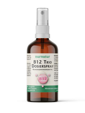 Dr. Theiss Vitamin B Komplex-Spray kombiniert Vitamin B1, B2, B3, B5, B6, B7 und B12. Vitamin B1, B2, B3, B6, B7 und B12 tragen zu einer normalen Funktion des Nervensystems und einem normalen Energiestoffwechsel bei. Vitamin B2, B3, B5, B6 und B12 tragen zur Verringerung von Müdigkeit und Ermüdung bei. Das leicht anzuwendende Spray ist dank Sprühkopf einfach zu dosieren.