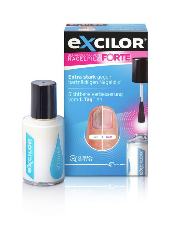 Nagelpilz kann kosmetisch unschön und ziemlich hartnäckig sein. Excilor Forte wirkt extra stark gegen fortgeschrittenen Nagelpilz – sichtbare Verbesserung vom ersten Tag an!