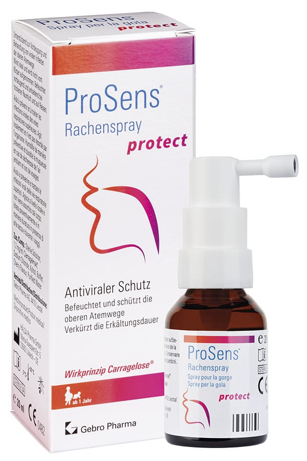 Der Rachenspray kann präventiv vor dem Betreten von Orten mit erhöhter Infektionsgefahr oder beim ersten Kratzen im Hals angewendet werden. Der Spray enthält einen Extrakt aus Rotalgen namens «Carragelose®», welcher einen Schutzfilm über die Schleimhäute bildet und so das Festsetzen und die Vermehrung von Erkältungsviren vermindert. Ebenfalls für Schwangere und Stillende wie auch für Kinder ab 1 Jahr geeignet.