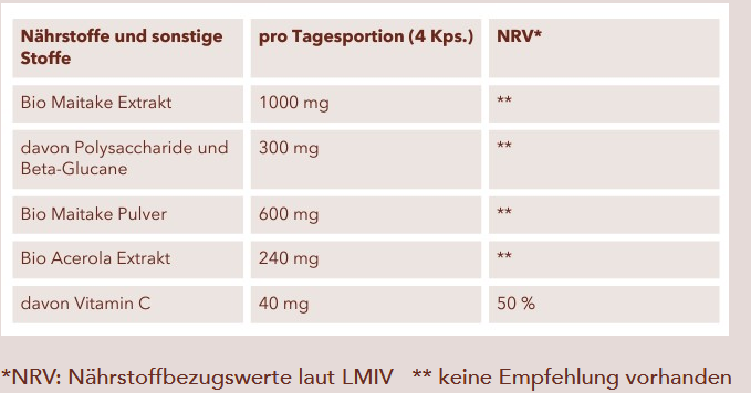 Bio Maitake Extrakt + Pulver ist die ideale Kombination für Ihr Wohlbefinden: Hochkonzentrierte Polysaccharide des Bio Maitake Extraktes und ursprüngliche Nährstoffe des Bio Maitake Pulvers sowie das Plus an Vitamin C aus dem Bio Acerola Extrakt werden in Kapseln vereint.