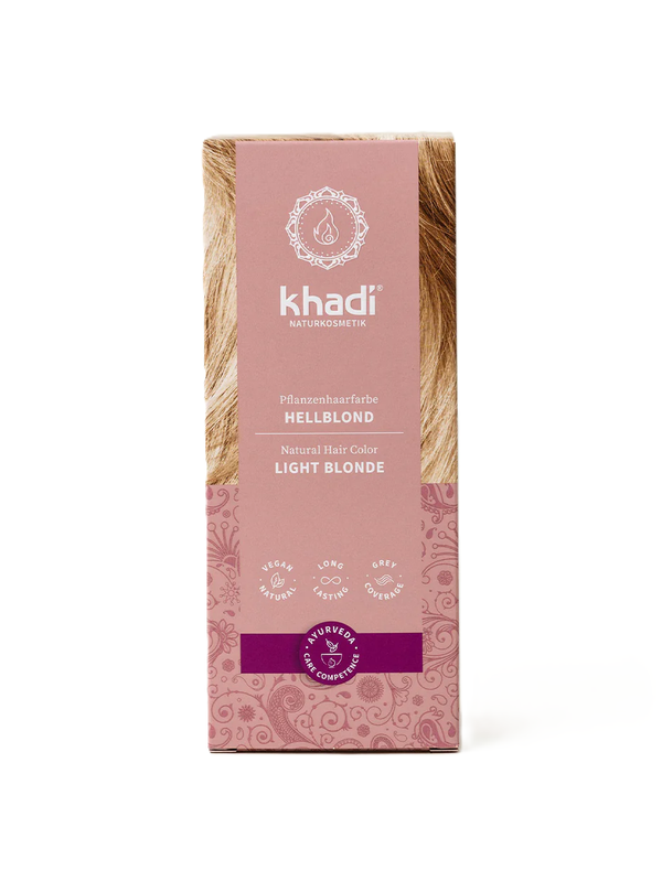 Lass Deine Haare in natürlichem Blond strahlen und setze Highlights, ohne Dein Haar künstlich aufzuhellen. Die natürliche Haarfarbe khadi Hellblond färbt Deine Haare in einem kühlen, strahlenden Blondton. Deshalb eignet sich die Nuance besonders, wenn Du helles oder weißes Haar hast. Du hast die Wahl: Lässt Du die khadi Haarfarbe länger einwirken, erhältst Du einen warmen, goldenen bis rötlichen Blondton. Dunkleres Haar glänzt intensiv und hellere Strähnen strahlen mit weizenblonden bis rotgoldenen Reflexen noch kräftiger.