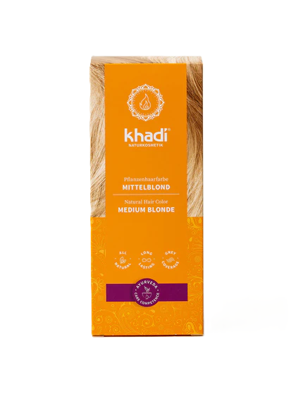 Pflanzliche Wirkstoffe färben schonend und pflegend. khadi Mittelblond ist 100 % natürlich, vegan und frei von synthetischen Inhaltsstoffen. Wie eine pflegende Farblasur legen sich die Pflanzenpigmente um jedes einzelne Haar. Du fühlst, dass Deine Haare gesund und füllig sind. Naturhaarfarbe für kraftvolles Volumen und natürlichen Glanz.