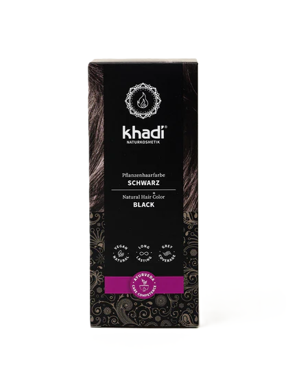 Die Naturhaarfarbe enthält wirkvolle Inhaltsstoffe wie Indigo, Henna und Amla. Die natürlichen Farbstoffe färben Dein Haar intensiv und dunkel. Wie eine Farblasur legen sich die Pflanzenpigmente um jedes einzelne Deiner Haare und pflegen es. Du fühlst die Spannkraft und das Volumen in Deinen Haaren. Sie glänzen gesund und schimmern in einem natürlichen Schwarz. khadi Schwarz ist 100 % natürlich und vegan – ohne synthetische Zusätze wie Ammoniak, Peroxide oder Azofarben.