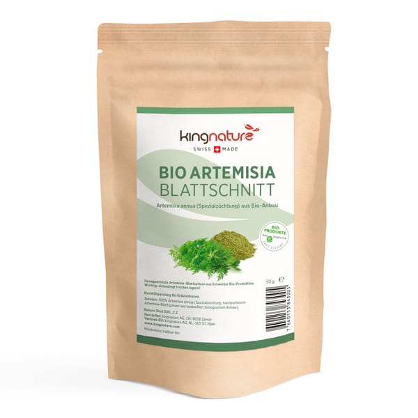 Artemisa-Blattspitzen von Bio-Artemisia annua aus einer Schweizer Spezialzüchtung. Artemisiakraut als Nachfüllpackung für Kräuterkissen. Das verwendete Artemisia annua ist eine Spezialzüchtung mit einer hohen Wirkstoffkonzentration.