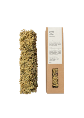 Alle Räucherbündel werden aus hochwertigen Kräutern in Bio-Qualität aus Deutschland hergestellt. Mit einem Kräuterhof in Süddeutschland wird zusammengearbeitet. Fünf erfahrene Kräuterfrauen haben die Pflanzen geerntet, getrocknet und gebündelt. So ist jedes Bündel ein Unikat aus der heimischen Natur.