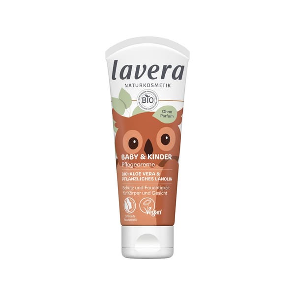 Schutz und Feuchtigkeit für Körper und Gesicht Die behutsam formulierte Pflegecreme aus der lavera Baby & Kinder Serie stärkt die natürliche Schutzfunktion der Haut und spendet ihr nachhaltend Feuchtigkeit. Mit Bio-Aloe Vera und pflanzlichem Lanolin. Ohne synthetische Duft-, Farb- und Konservierungsstoffe1. Sanft, beruhigend und besonders verträglich.