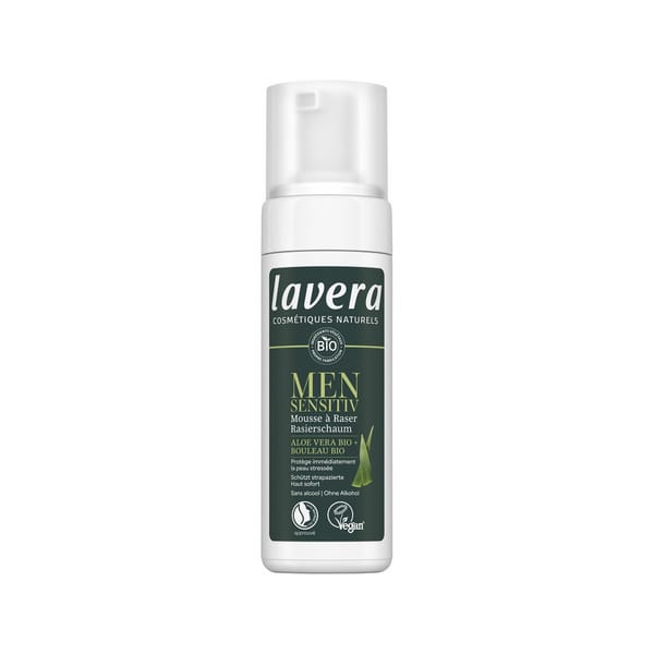 Milde Effektive Naturkosmetik: der MEN Sensitiv Rasierschaum ohne Alkohol beugt Irritationen und Rötungen vor und schützt strapazierte Haut sofort. Feuchtigkeitsspendende Bio-Aloe Vera und Bio-Birke beruhigen selbst empfindliche Haut und machen die Rasur schnell, einfach und geschmeidig. Ohne künstliche Farb-und Konservierungsstoffe.