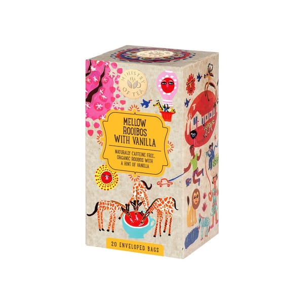 Unser Mellow Vanilla Rooibos Tee, der aus den Nadeln eines südafrikanischen Krauts hergestellt wird, ist von Natur aus koffeinfrei und reich an Antioxidantien.