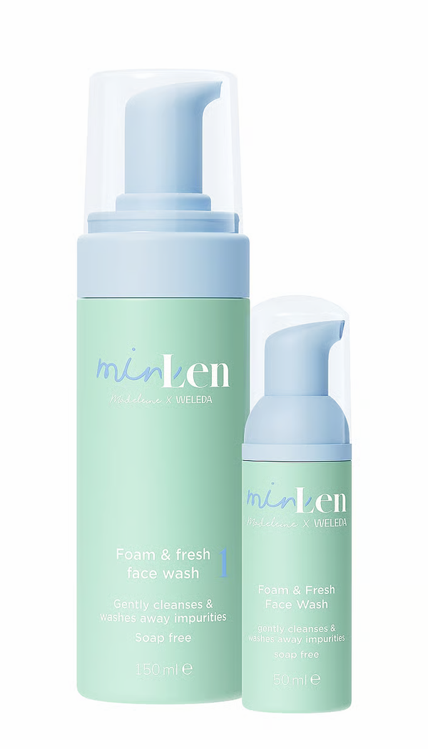 Mit seiner 100% natürlichen und seifenfreien Formel mit Leinsamenöl, Blaubeersamenöl und befreit minLen Foam & Fresh Face Wash die zarte Haut von Kids und Tweens von Schmutz, Staubpartikeln. Der leichte und fluffige Schaum und sein Feel-good-Duft machen die Gesichtsreinigung zum puren Vergnügen. Die Verträglichkeit des Reinigungsschaum ist dermatologisch bestätigt. Der Reinigungsschaum ist auch für empfindliche Haut geeignet.