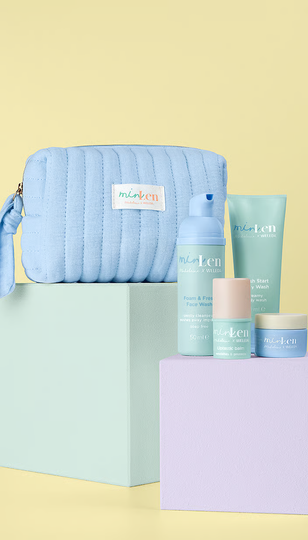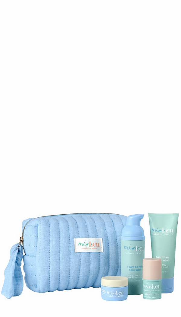 Exklusives minLen Kosmetiktäschchen Beginne deine Routine mit dem Sweet Foam & Fresh Face Wash, einem sanften und federleichten Reinigungsschaum, der Schmutz und Staubpartikel entfernt Die Hydramazing Barrier Face Cream ist dein Held für die tägliche Feuchtigkeitspflege. Sie sorgt für einen strahlenden Glow und schützt deine Haut vor oxidativem Stress durch blaues Bildschirmlicht. Deine Lippen werden den Liptastic Balm feiern: Er pflegt deine Lippen samtweich und bewahrt sie davor, spröde zu werden. Unter der Dusche macht dich der Fresh Start Body Wash frisch. Er reinigt supersanft, aber gründlich, pflegt die Haut und verzaubert mit einem unwiderstehlichen Duft.