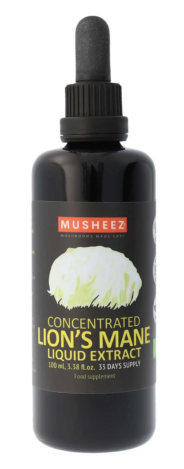 Lion’s Mane Liquid Extract contains purified water, certified organic 15:1 lion’s mane (Hericium erinaceus) dual extract, natural citric acid, rowan berry extract (Sorbus aucuparia)