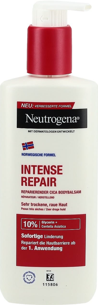 Norwegische Formel® Intense Repair. Reparierender CICA Bodybalsam. Dieser reparierende, nicht fettende Bodybalsam wirkt wissenschaftlich bewiesen wie eine wohltuende feuchtigkeitsspendende 4-in-1-Schutzhülle für die Haut & bietet.