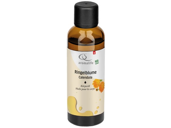 Calendulaöl, geeignet für empfindliche, strapazierte Haut, Alterspflege sowie Baby- und Kinderhaut. Unterstützt die Hautregeneration, lässt fahle Haut wieder strahlen.
