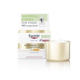 Eucerin Elasticity-Filler - Von Hautexperten empfohlen. Alles für Ihre Schönheit. Online bestellen bei Würzenbach-Drogerie. Schneller Versand. Individuelle Beratung. Die Pflegecremes pflegen dünner werdende, anfällige Haut intensiv und stärken die Hautstruktur, indem die Elastizität verbessert wird und tiefe Falten sichtbar gemildert werden. Das glättende, reichhaltige Gesichts-Öl verbessert die Hautelastizität und unterstützt die Widerstandskraft. Alle Produkte sorgen für ein glattes und seidenweiches Hautgefühl und einen frischen, strahlenden Teint.