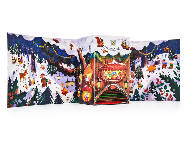 Nach dem Motto „Vorfreude zum Aufgiessen“ begleitet Sie der neue Tee-Adventkalender stimmungsvoll durch die Vorweihnachtszeit. 24 duftende Sorten – von beliebten Klassikern bis zu würzigen Neuheiten – bringen Weihnachten jeden Tag genussvoll etwas näher. Durch das Aufklappen der Flügel wird der Adventkalender zum festlichen Blickfang. Weihnachtliche Motive und besinnliche Anregungen auf jedem Teebeutel wärmen Herz und Seele.