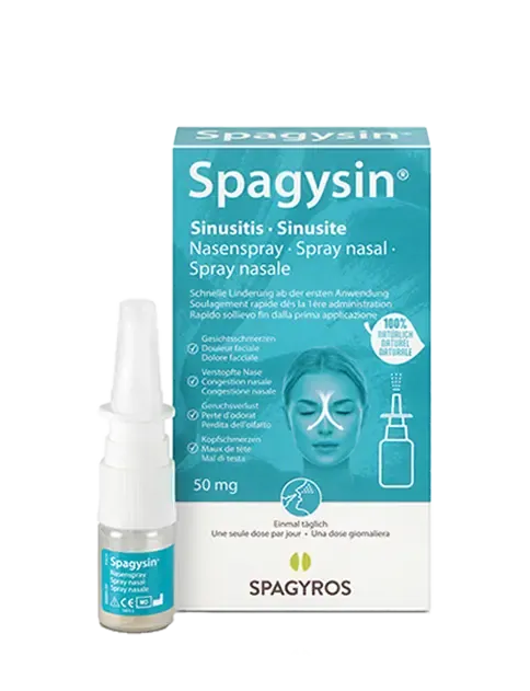 Nase zu? Kopf dröhnt? Geruch weg? Frei durchatment, trotz Sinusitis. Der Spagysin® Sinusitis Nasenspray ist eine wirksame und zuverlässige Lösung zur Linderung typischer Symptome einer Sinusitis wie verstopfte Nase, Gesichtsschmerzen, Geruchsverlust und Kopfschmerzen.
