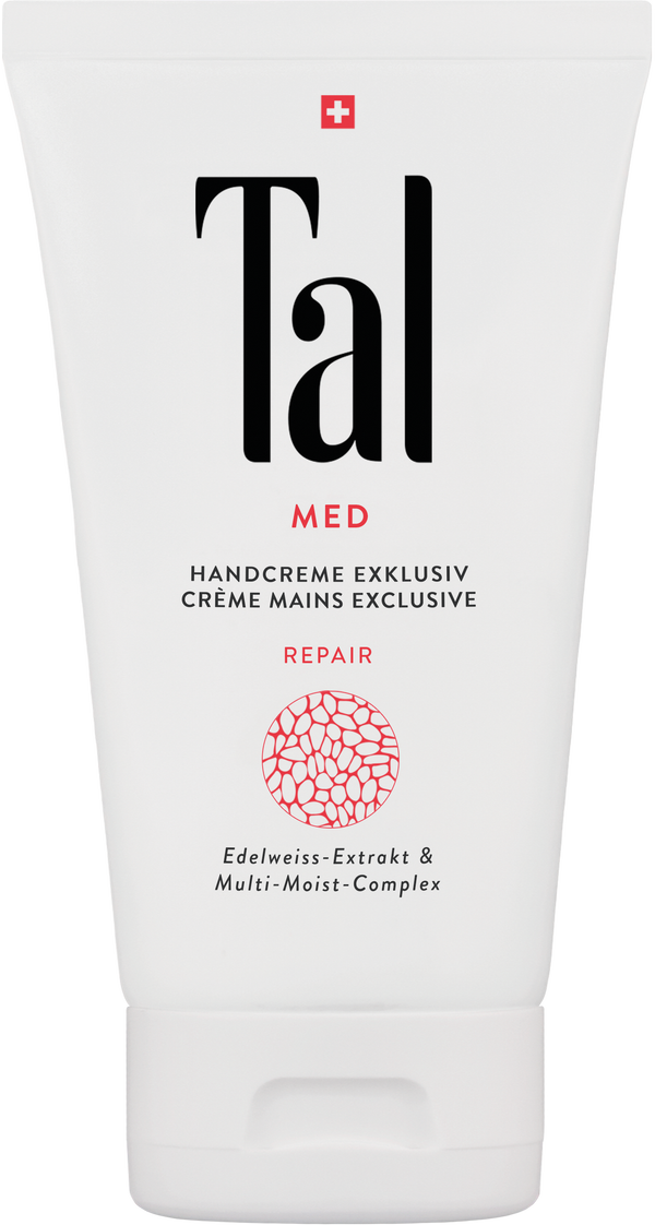 Gegen rissige, spröde Haut an Händen und Ellenbogen. Dank einem speziellen Trägermedium dringt Tal MED Exclusiv Handcreme tief in die Hautzelle ein, wo die bioaktiven Inhaltstoffe und Pflanzenextrakte ihre Wirkung entfalten. Die Handcreme regeneriert beanspruchte Hände, fördert die Zellelastizität, schützt vor freien Radikalen und verhindert das Eindringen von Gerüchen. Geprüfte Wirksamkeit bei der Nachbehandlung von Narben.