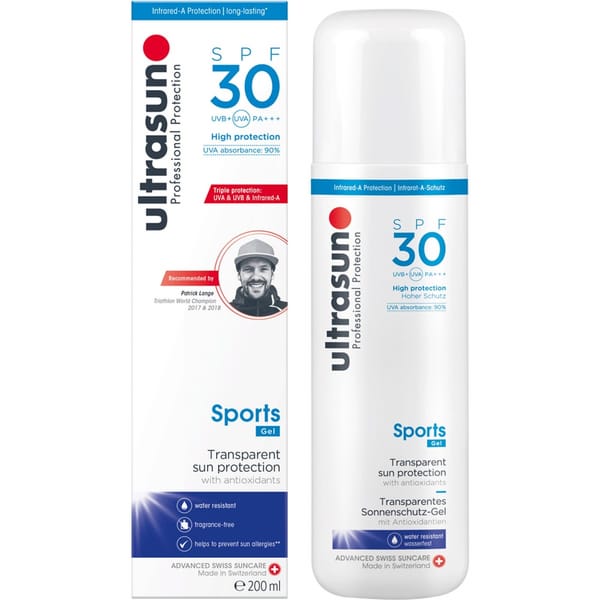 Das transparente Ultrasun Sports Gel SPF30 ist der ideale Begleiter für sportliche Aktivitäten im Freien.