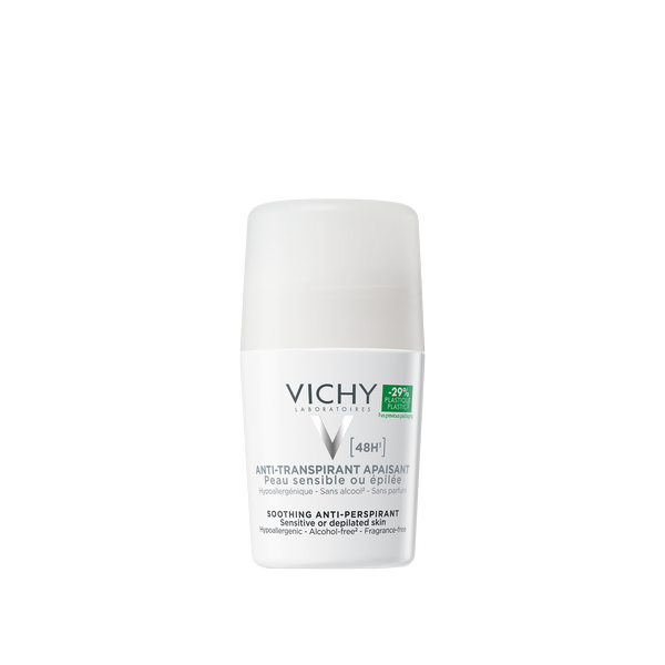 Deodorant- und Anti-Transpirationswirksamkeit über 48 Stunden. OHNE DUFSTSTOFFE. Verträglichkeit dermatologisch getestet. Unter dermatologischer Kontrolle an empfindlicher Haut getestet. Angereichert mit beruhigendem, kräftigendem und regenerierendem Vichy Thermalwasser.