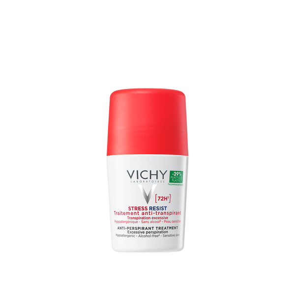 Reich an Anti-Transpirationswirkstoffen, ultraabsorbierenden Mineralstoffen und an Perspicalm™, diese Behandlung gegen das Schwitzen reguliert die Wärmeansammlung und die Transpirationsspitzen in Stresszeiten. So geschützt fühlen Sie sich den ganzen Tag über sicher. Angereichert mit vulkanischem Wasser von Vichy.