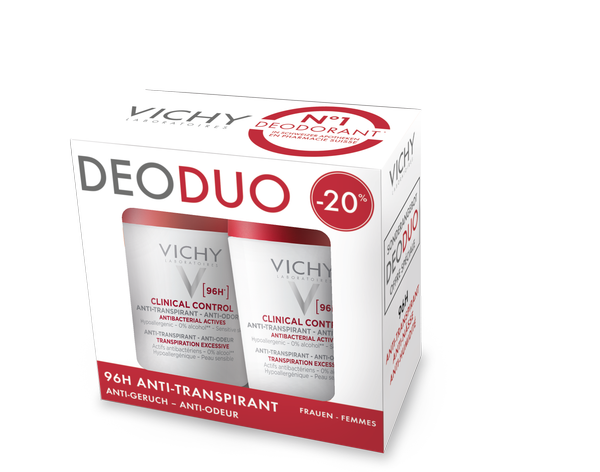 Das Vichy Antitranspirant für Frauen Clinical Control 96h kombiniert lang anhaltenden Halt mit geruchs- und feuchtigkeitsregulierender Wirkung dank reinigendem und antibakteriellem Zink. Den ganzen Tag über pflegt dieses Antitranspirant Ihre Achseln und lässt die Haut atmen für optimalen Komfort, ohne zu kleben oder sich gereizt anzufühlen. Die einzigartige Formel wurde unter dermatologischer Aufsicht entwickelt und reguliert Schweiss und Feuchtigkeit bis zu 96 Stunden lang, um übermässiges Schwitzen zu bekämpfen.