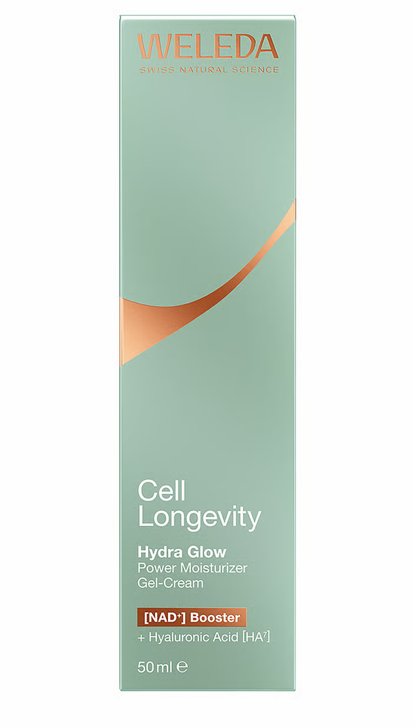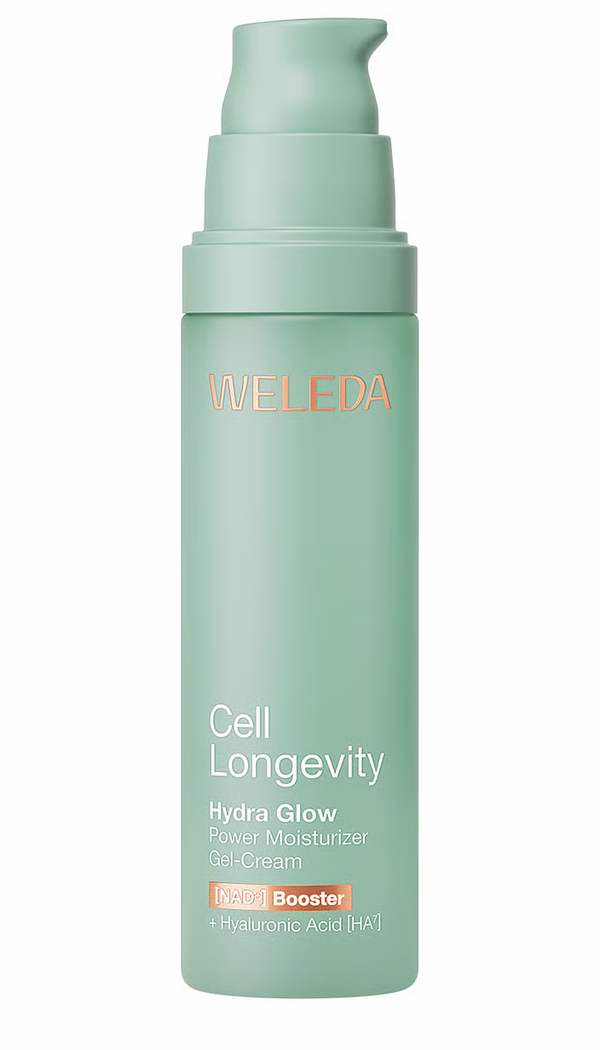 Die Hydra Glow Power Moisturizer Gel-Creme von Weleda definiert Hautpflege neu: Herzstück dieser aussergewöhnlichen Formel ist ein innovativer [NAD⁺] Booster - ein Schlüsselwirkstoff, der die NAD⁺-Level der Haut wieder auffüllt. Er verlangsamt den Hautalterungsprozess auf zellulärer Ebene und fördert die Hautverjüngung1. Ergänzt durch Hyaluronsäure [HA⁷] in 7 verschiedenen, aufeinander abgestimmten Molekulargewichten, durchfeuchtet das Produkt die Haut intensiv, lässt sie praller und frischer aussehen und verleiht ihr einen unvergleichlichen Glow.