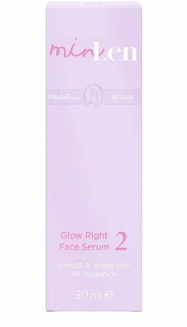 Das minLen Glow Right Face Serum versorgt die Haut 24 Stunden mit Feuchtigkeit, trägt zum Schutz vor blauem Bildschirmlicht bei und zaubert einen strahlenden Glow