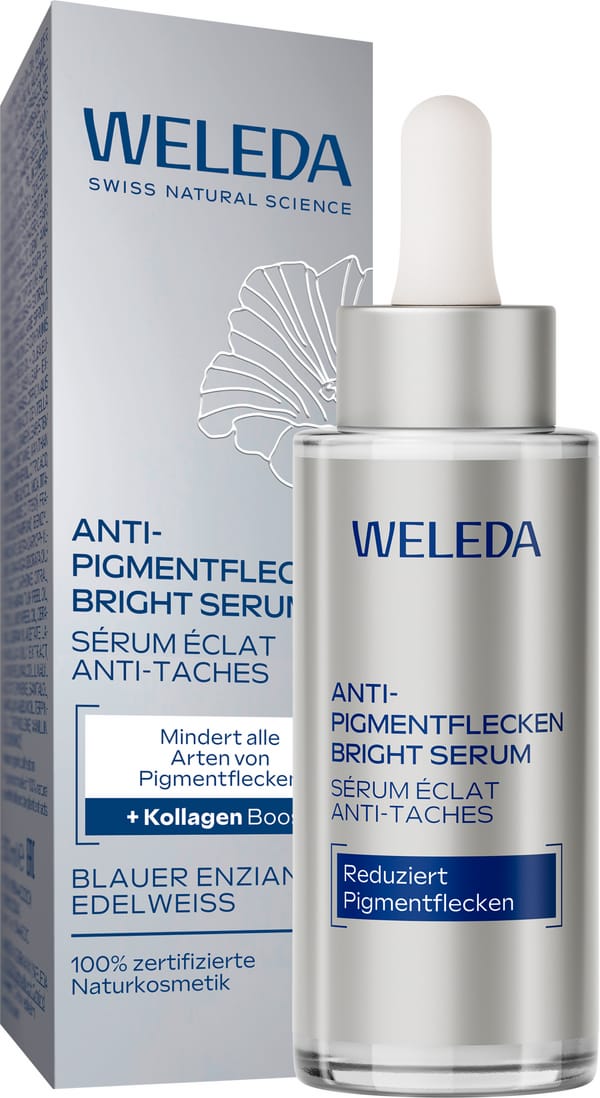 Das Anti-Pigmentflecken Bright Serum von Weleda mindert alle Arten von Pigmentflecken und schenkt sofort einen strahlenden Teint.