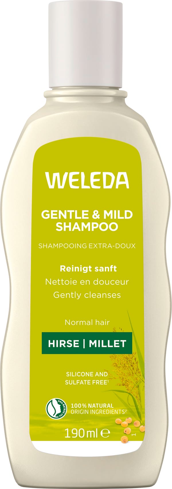 Das Hirse Pflege-Shampoo reinigt Haar und Kopfhaut sanft und erhält den natürlichen Glanz sowie die Spannkraft des Haares.