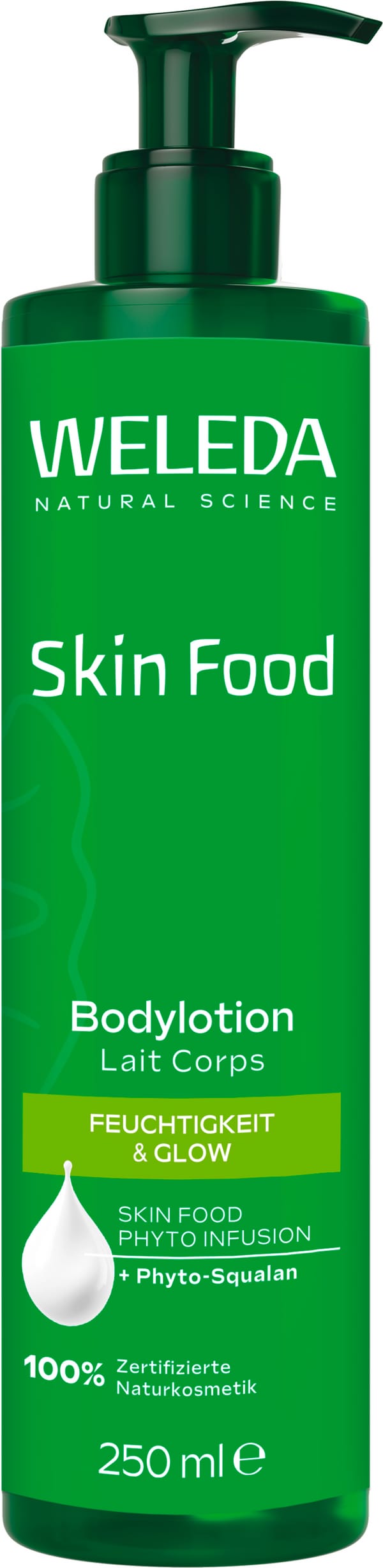 Die Skin Food Bodylotion von Weleda verwöhnt die Haut intensiv mit Feuchtigkeit und hinterlässt einen strahlenden Glow.
