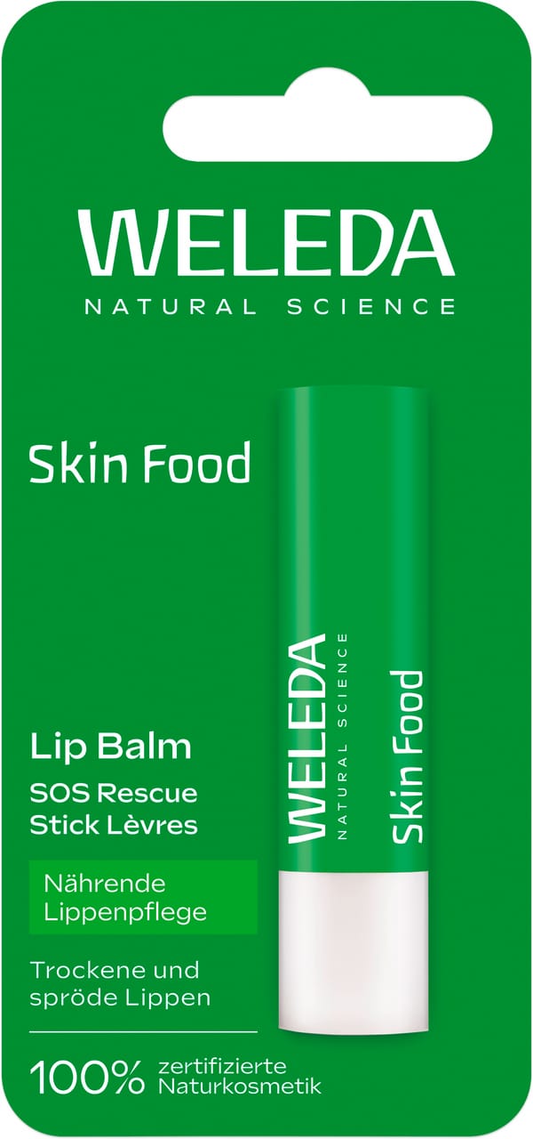 Bye-bye spröde und trockene Lippen! Der Skin Food Lip Balm von Weleda mit 3-fach SOS-Rescue-Effekt repariert, nährt und pflegt die Lippen sofort verführerisch zart und geschmeidig. Mit seinen natürlichen Inhaltsstoffen schenkt er ein weiches Hautgefühl – völlig ohne zu kleben. Er eignet sich ideal als Basis unter dem Lippenstift. Genieße diese verwöhnende Pflege!