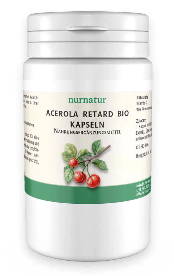 1 Kapsel enthält: 427 mg Acerola Kirschen Bio Extrakt, Überzugsmittel: Hydroxypropylmethylcellulose (pflanzliche Kapselhülle).