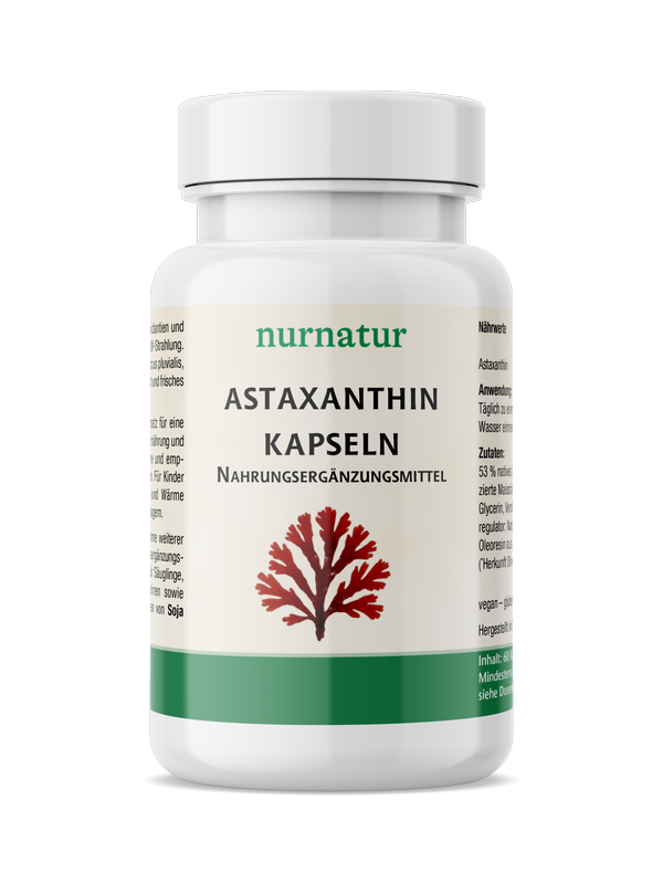 Es stammt aus der Mikroalge Haematococcus pluvialis, die unter idealen Bedingungen Sonnenlicht und frisches Wasser aufnimmt.