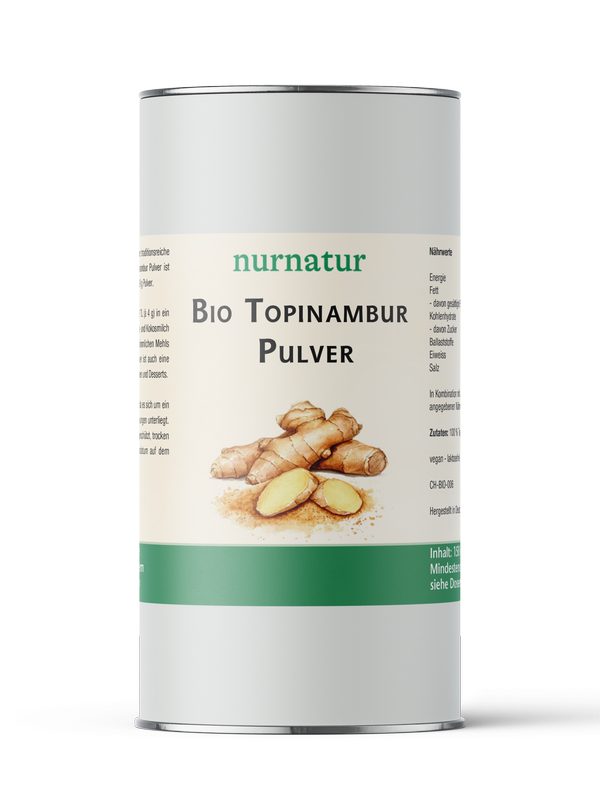 Topinambur, auch „Sonnenknolle“ genannt, ist eine traditionsreiche Pflanze mit nussigem Geschmack. Unser Bio Topinambur Pulver ist reich an Ballaststoffen und enthält 50 g Inulin pro 100 g Pulver.