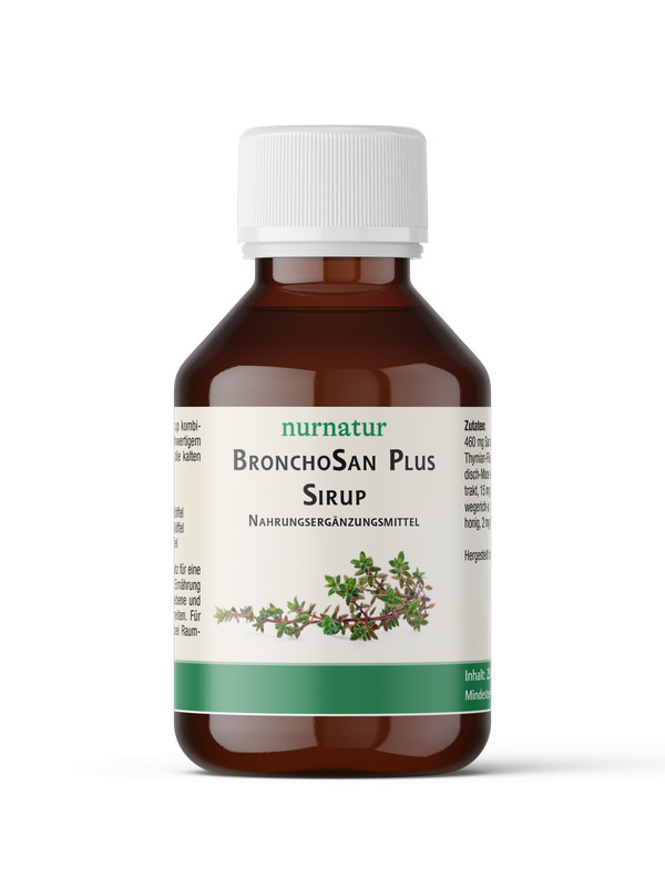 Unser wohltuender BronchoSan Plus Sirup kombiniert wertvolle Pflanzenextrakte mit hochwertigem Manuka Honig, um Sie optimal durch die kalten Wintermonate zu begleiten.