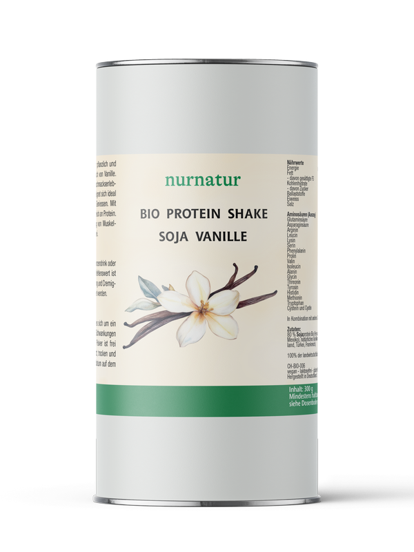 80 % Sojaprotein Bio (Herkunft: Asien), 15 % Agavendicksaftpulver Bio (Herkunft: Mexiko), natürliches Vanillearoma (Herkünfte der Zutaten: Salvador, China, Deutschland, Türkei, Frankreich).