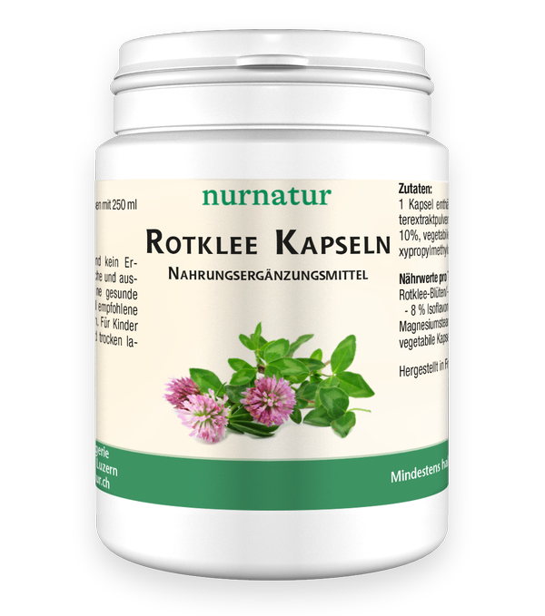 1 Kapsel enthält: Rotklee-Blüten/-Blät-terextraktpulver 90%, Magnesiumstearat 10%, vegetabile Kapselhülle (aus Hydroxypropylmethylcellulose).