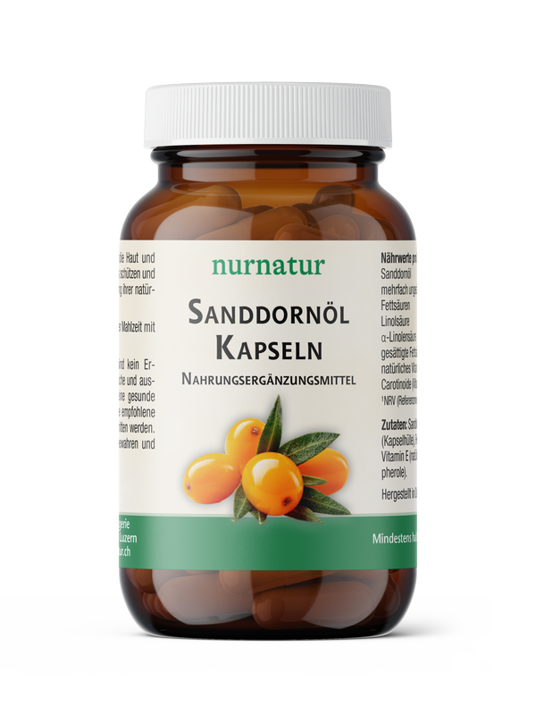 Sanddornöl Kapseln können die Haut und Schleimhäute von innen heraus schützen und befeuchten und so zur Erhaltung ihrer natürlichen Funktion beitragen.