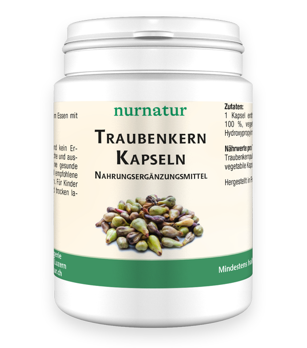 1 Kapsel enthält: Traubenkernpulver 100 %, vegetabile Kapselhülle (aus Hydroxypropylmethylcellulose).